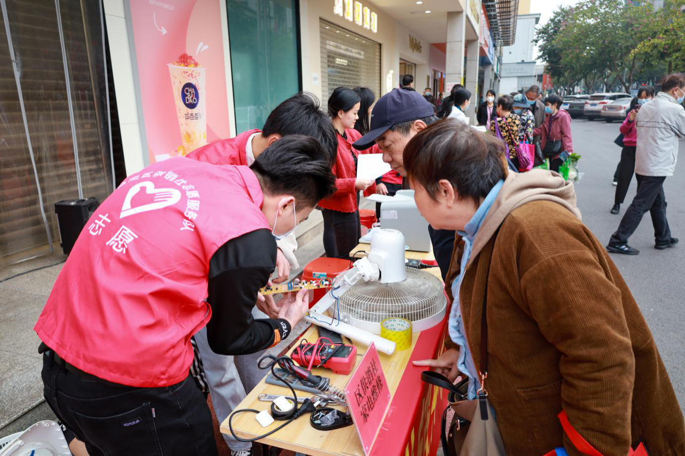 当天上午,志愿者们精神抖擞,积极搭建服务平台,为社区群众提供了家电维修、免费打印、理发、禁毒宣传、垃圾分类宣传、健康义诊等志愿服务活动,探花社区 组织开展的家电维修服务深受社区群众欢迎,直到活动结束还有群众带上有故障的小家电前来维修。活动当天,志愿者们为社区群众维修了电风扇、电磁炉、豆浆机、烧水壶等小家电共20余件。在活动现场,探花社区 志愿者们还开展了垃圾分类宣传活动,向群众普及垃圾分类知识,养成健康文明的生活习惯。本次志愿服务活动展示了探花社区青年干部忠诚服务人民的良好形象,赢得社区群众的广泛赞誉。