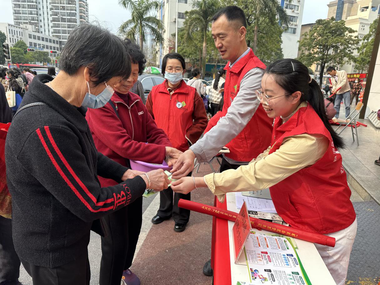 图为探花社区 志愿者为社区群众发放垃圾分类宣传手册