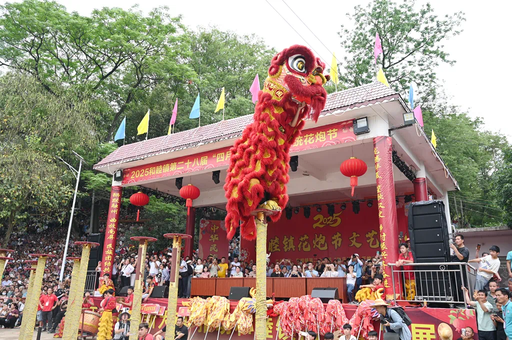 作为融水县极具影响力的传统节日,花炮节现场热闹非凡,盛大的抢花炮、舞龙舞狮、抬阁巡游等民俗活动精彩纷呈,而供销大集的加入,更是为节日注入了新的元素。