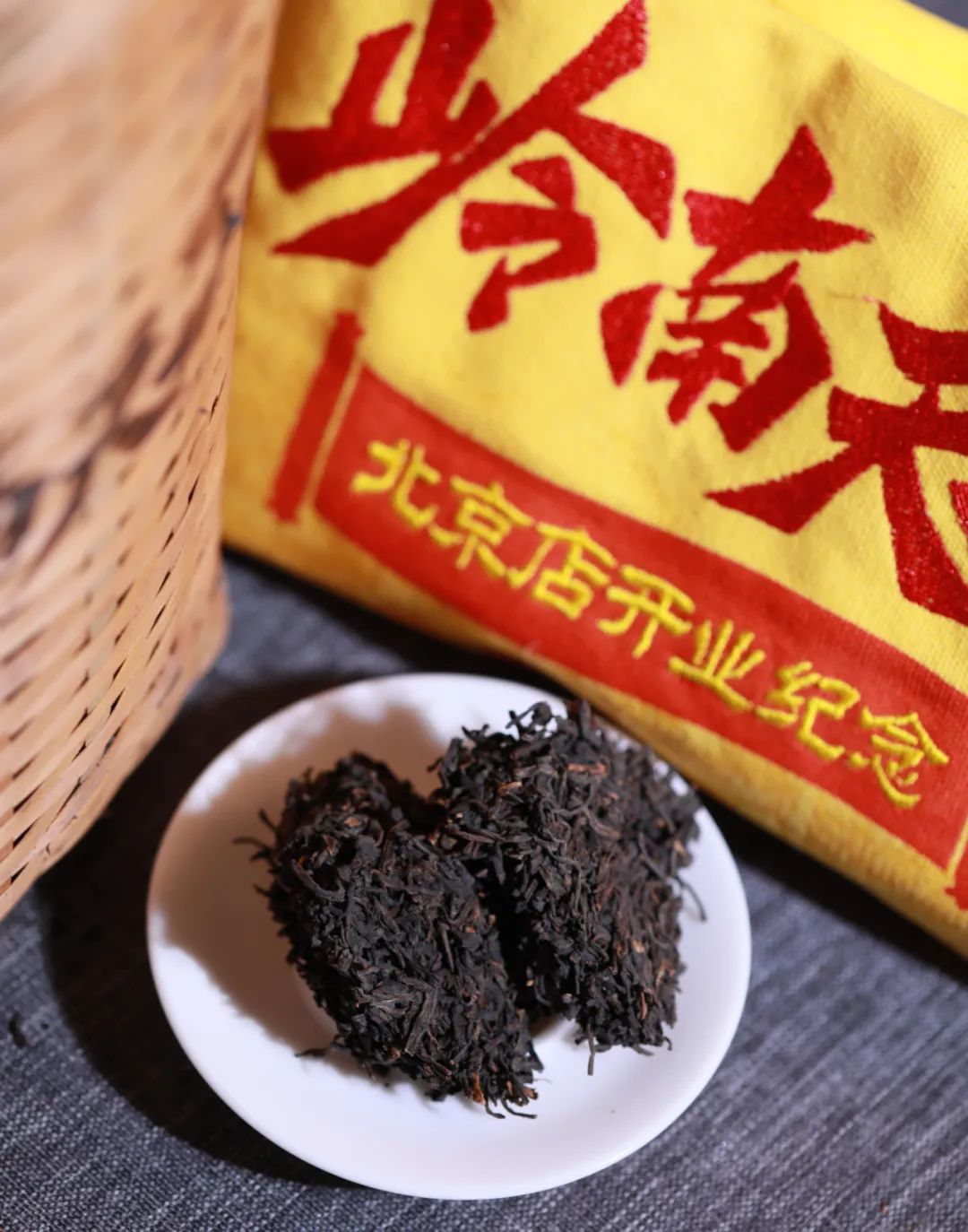为纪念北京店开业,三鹤特别筹备了一款7千克原箩紧压茶【岭南天工】,采用六堡茶最经典的竹箩加布袋的包装形式,呈现最典型的“三鹤味”,用一杯时光沉淀的醇香,凝聚天工与精心,彰显独特的岭南茶韵。