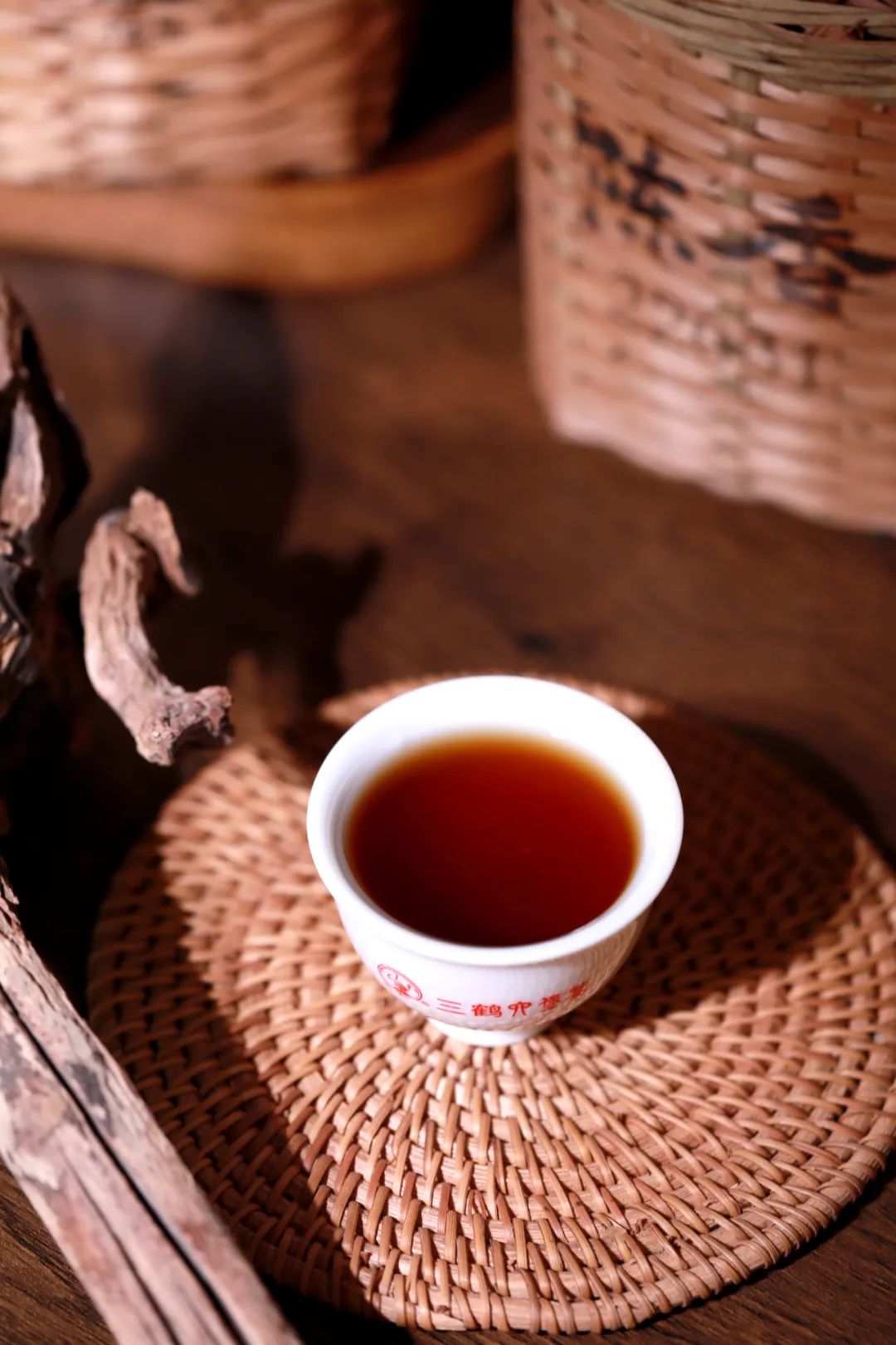 开汤后品饮,其陈香纯正,兼有甜香,香气干净柔顺;汤色红明亮,口感醇甜顺口,是陈香与菌花香交织的口感,甜润感明显、生津迅速;冲泡三、四道后,清甜感愈发明显;尾调甜润如蜜糖水,十余道后仍有余韵。