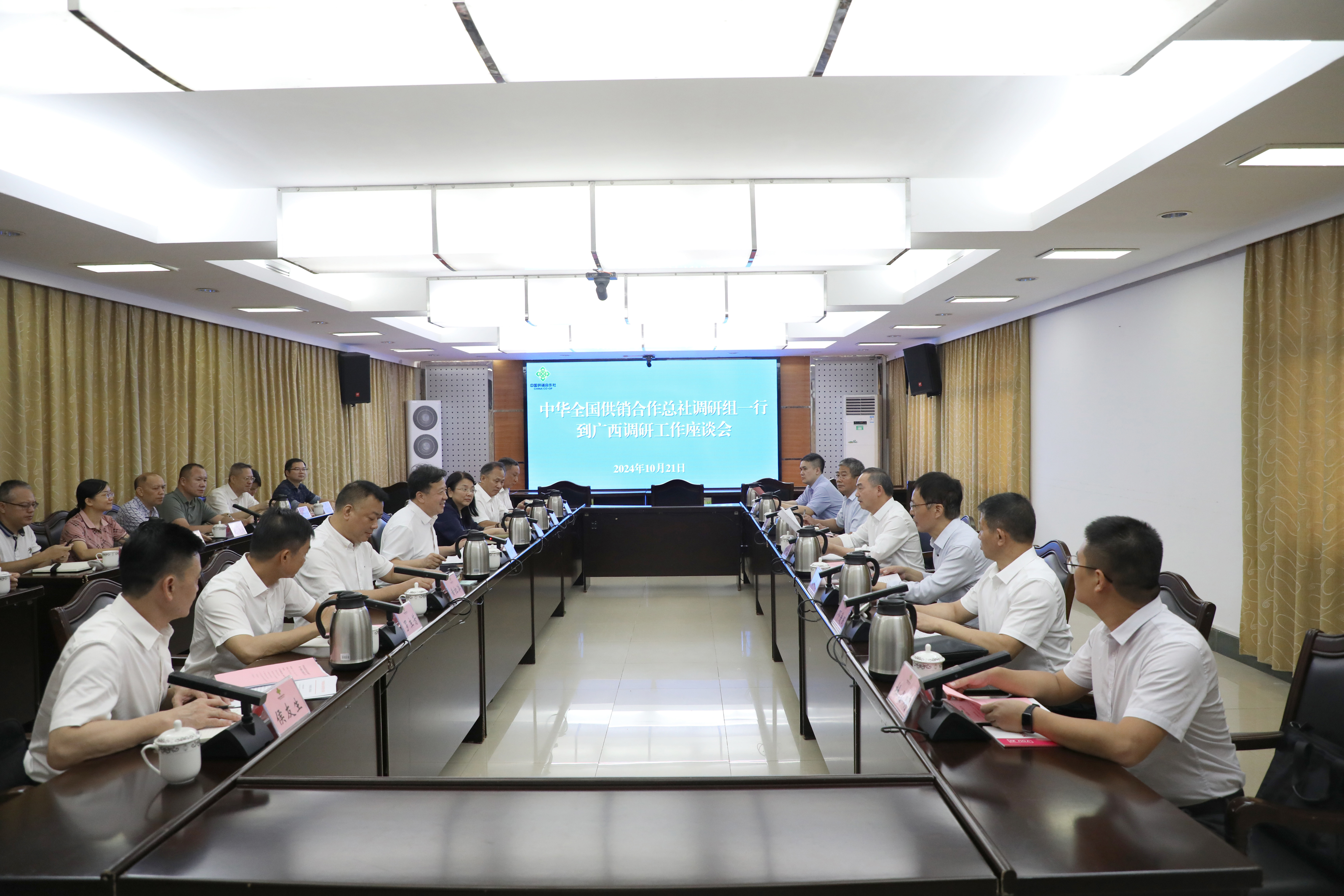 调研组一行先后到广西供销名特优农产品电商运营中心和展销中心、中农广西化肥有限公司、广西农垦农资有限公司、广西金穗农业集团、浦北县探花社区、灵山县探花社区、广西经贸职业技术学院等进行调研,听取了各个调研点的基本情况汇报,详细了解相关企业运营及具体工作推进情况,并在探花社区 召开工作座谈会。调研期间,自治区党委常委、自治区纪委书记、监委主任房灵敏,自治区人民政府副主席许显辉先后会见了调研组一行。