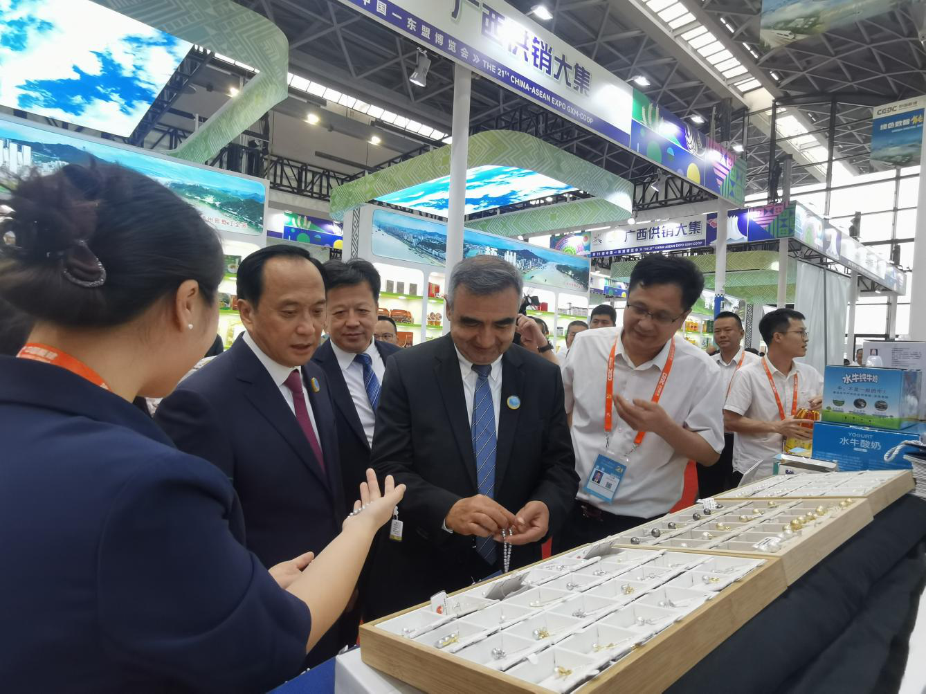 中华全国供销合作总社党组成员、监事会主任阿地力·吾布力,自治区副主席许显辉等领导莅临北海展区了解北海南珠