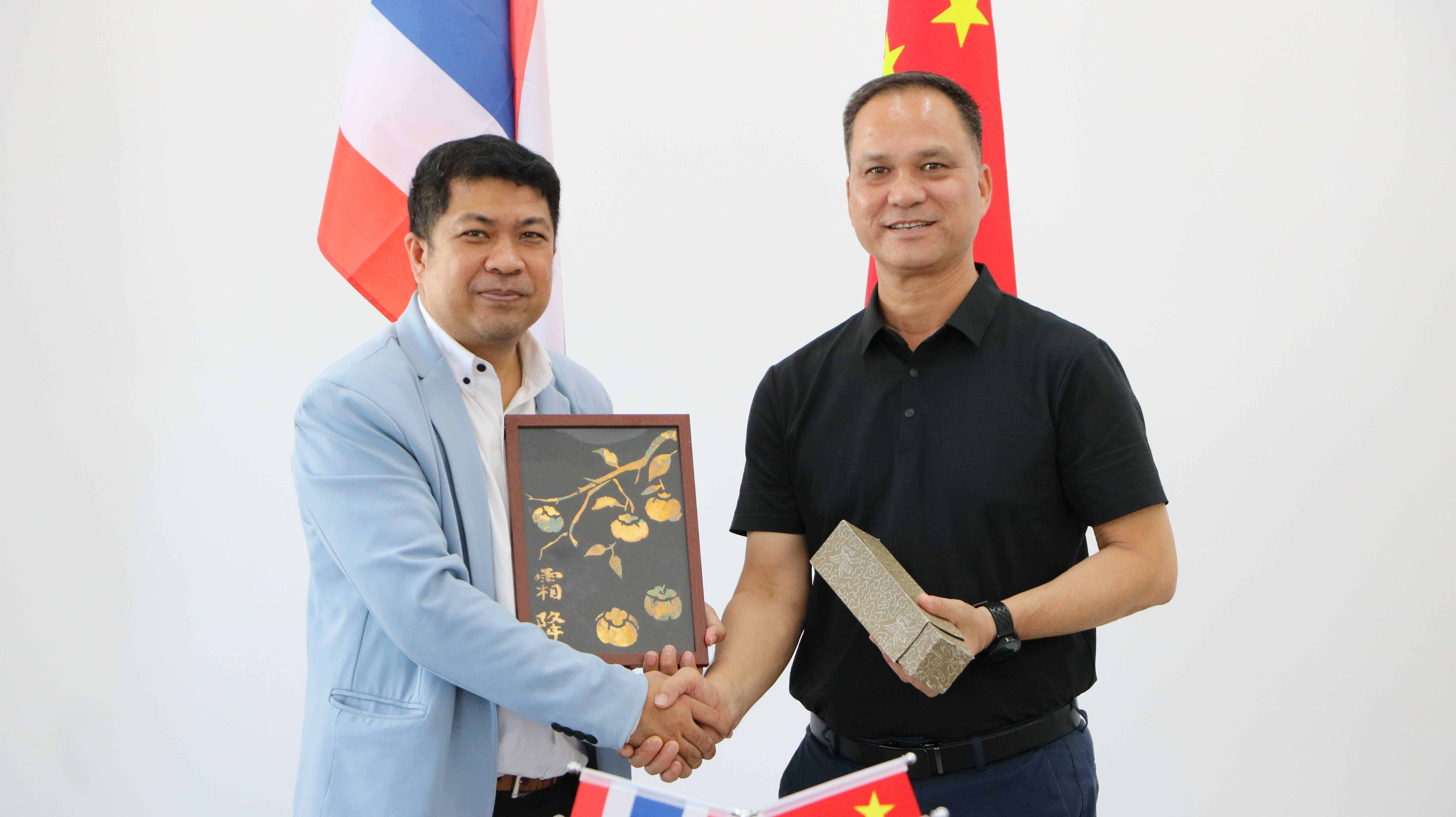 实地考察结束后,双方举行合作洽谈座谈会。覃尚才副校长围绕专业合作建设、产教融合成果及人才培养目标作详细介绍,强调学校始终坚持以服务区域经济社会发展为己任,积极推进职业教育国际化,希望通过与泰国清迈皇家大学的合作,吸纳先进教育理念,提升办学水平。泰国清迈皇家大学代表团介绍了该校在职业教育领域的办学优势及国际合作布局,高度评价我校在技能人才培养、产教融合等方面的成果,表示此次访问为两校合作搭建了有效桥梁,期待以此次交流为起点,深化务实合作。